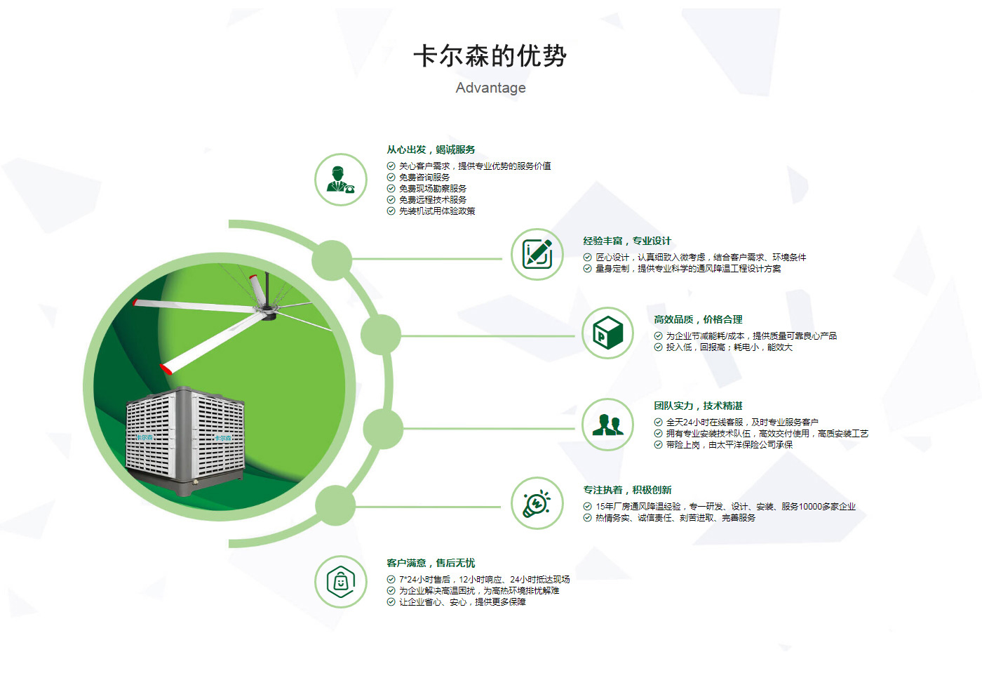 應(yīng)用范圍: 適用于高溫或有異味的車間:熱處理廠、鑄件廠、塑料廠、鋁型材廠、制鞋廠、皮件廠、電鍍廠、印染廠等各種化工廠等。 適用于勞動密集型企業(yè):服裝廠,各類裝配車間,網(wǎng)吧等。 適用于需要降溫又需要一定濕度的場所:棉紡廠、毛紡廠、麻紡廠、織布廠、化纖廠、經(jīng)編廠、加彈廠、針織廠、絲織廠、襪廠等各類紡織廠。 適用于:倉儲物流領(lǐng)域、園藝溫室大棚通風(fēng)降溫、畜牧場降溫等場所。 全國服務(wù)熱線:13960350919